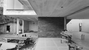 Residência em condomínio. Seus dois pavimentos apresentam volumes distintos que respondem a diferentes condicionantes. O pavimento térreo, acessível, ocupa toda a largura edificável do terreno resguardando o jardim privativo das áreas comuns do condomínio ao mesmo tempo em que integra visualmente áreas sociais internas e externas da casa.